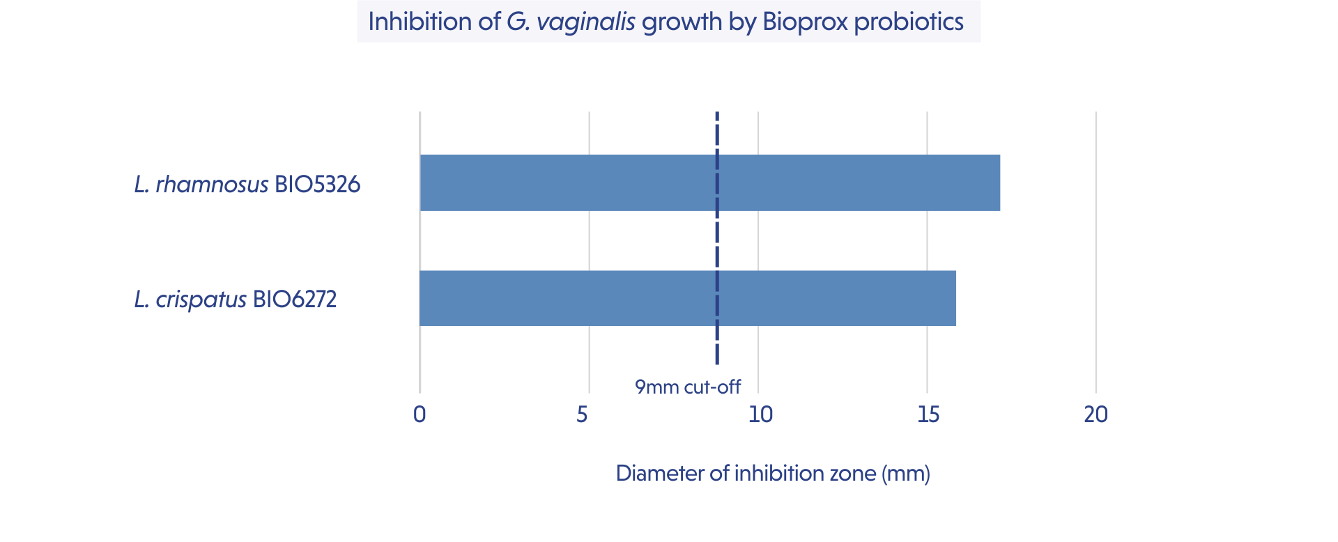 Bioprox strains L. plantarum BIO1096, L. crispatus BIO6272 and L. gasseri BIO6369 in postbiotic form (heat-killed) have been shown to significantly reduce the adhesion of Candida albicans and/or Gardnerella vaginalis on vaginal epithelial cells.